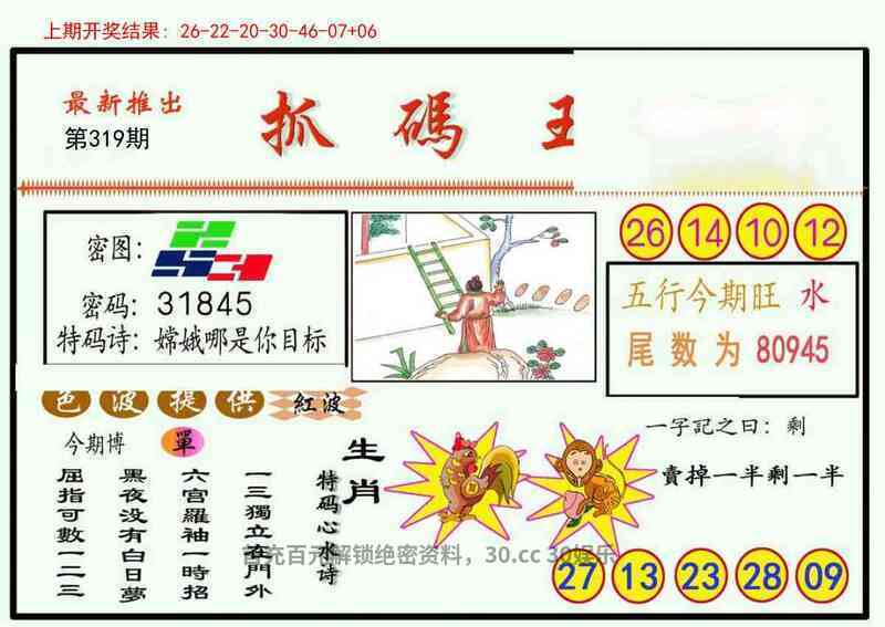 【精解抓码王】开(鸡09) 323期:三宇偏偏强出头 【主攻抓肖】鼠虎蛇马兔鸡猴羊龙 【抓码双波】红蓝波 |